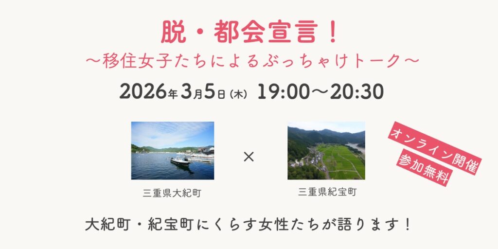 ウェブセミナー「脱・都会宣言!~移住女子たちによるぶっちゃけトーク~」を開催します。 便利な田舎で暮らす移住女子たちが特別に田舎事情を語りつくします!!